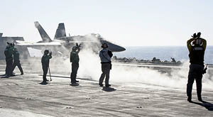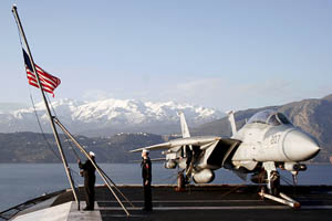 with a particular attention to the F-14 Tomcats. They will perform their last operational flights today.